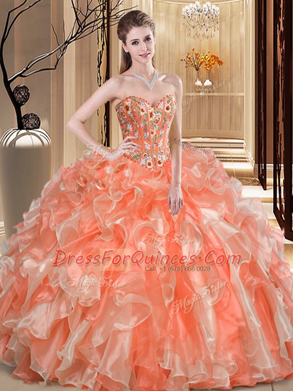 Orange Sleeveless Organza Lace Up Quinceanera Gowns for Prom and Military Ball and Sweet 16 and Quinceanera