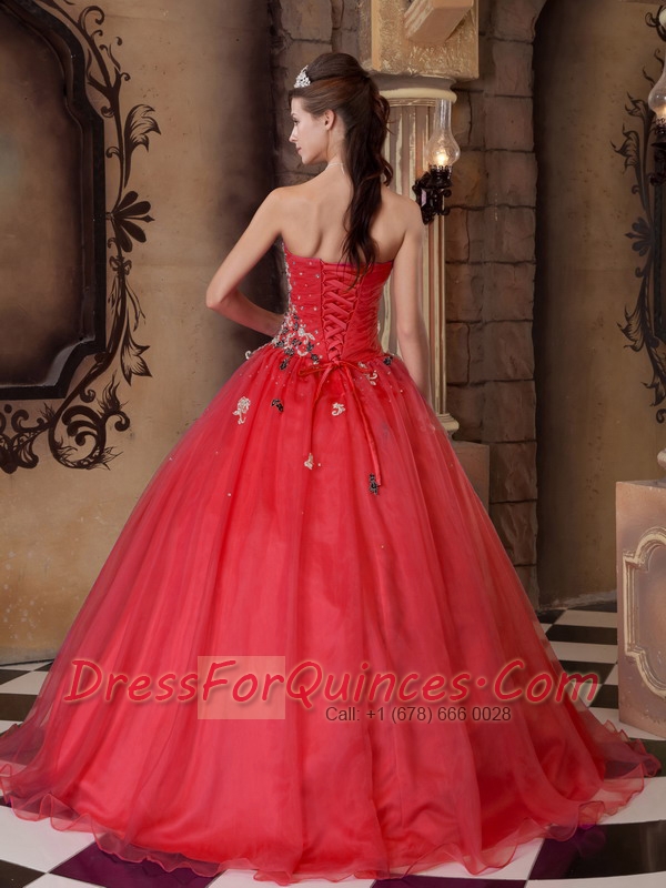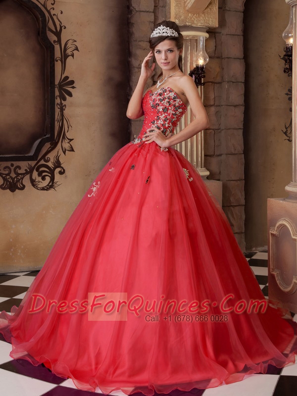 Organza Red Beadings and Appliques A-line/Princess Spring Quinceanera Dresses 2014
