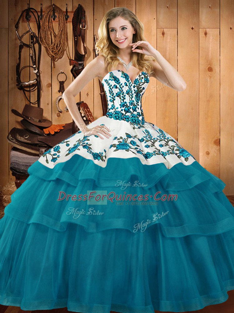 Perfect Teal Quince Ball Gowns Sweetheart Sleeveless Sweep Train Lace Up