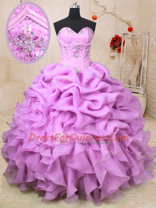 Pick Ups Lilac Sleeveless Organza Lace Up Ball Gown Prom Dress for Military Ball and Sweet 16 and Quinceanera