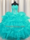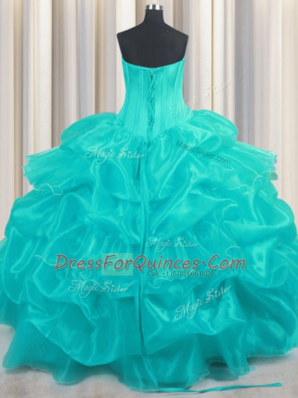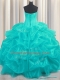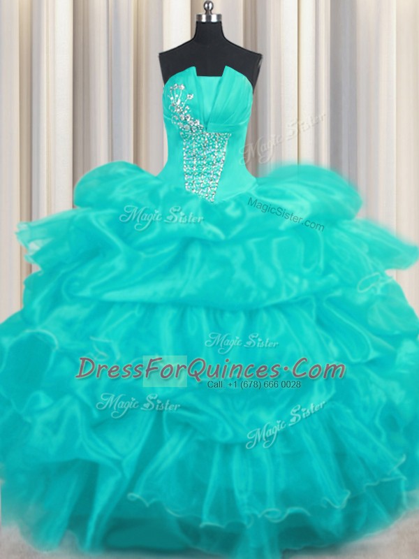 Pick Ups Ruffled Floor Length Aqua Blue Quince Ball Gowns Strapless Sleeveless Lace Up