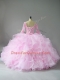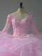 Pink Lace Up Sweet 16 Quinceanera Dress Lace and Ruffles Long Sleeves Floor Length