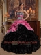 Popular Coral Red and Black BallGown Sweetheart Floor-length 2014 Spring Quinceanera Dresses