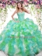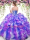 Pretty Floor Length Lace Up 15th Birthday Dress Multi-color for Military Ball and Sweet 16 and Quinceanera with Beading and Ruffles