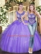 Pretty Lavender Ball Gowns Scoop Sleeveless Tulle Floor Length Lace Up Beading and Ruffles Sweet 16 Dresses