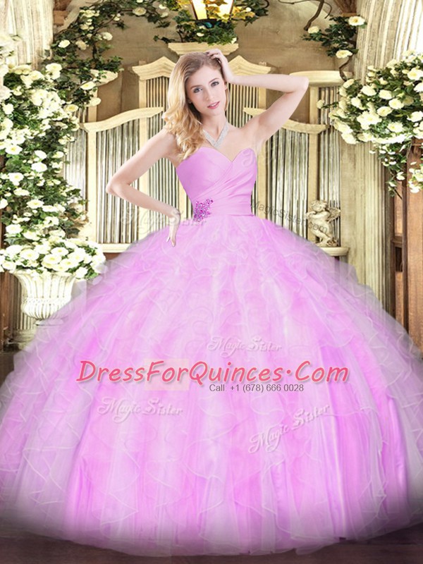 Pretty Sleeveless Beading and Ruffles Lace Up Quinceanera Gowns