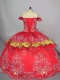 Red Off The Shoulder Neckline Embroidery Sweet 16 Dress Sleeveless Lace Up