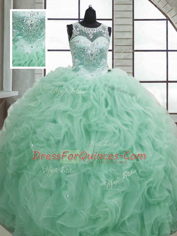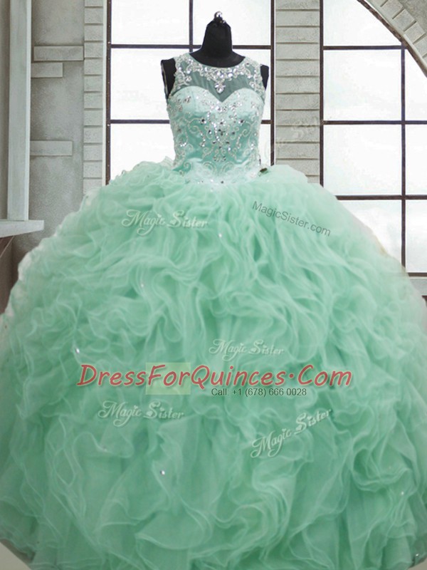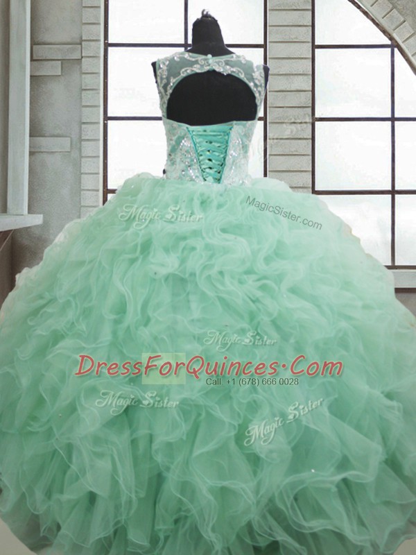 Romantic Apple Green Sleeveless Beading and Ruffles Floor Length Quinceanera Gowns