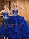 Royal Blue Organza Lace Up Sweetheart Sleeveless Floor Length Quinceanera Dresses Embroidery and Ruffles