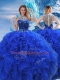 Royal Blue Organza Zipper Scoop Sleeveless Floor Length Quinceanera Gown Ruffles and Sequins