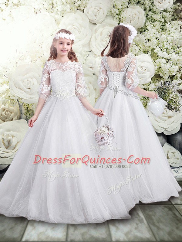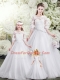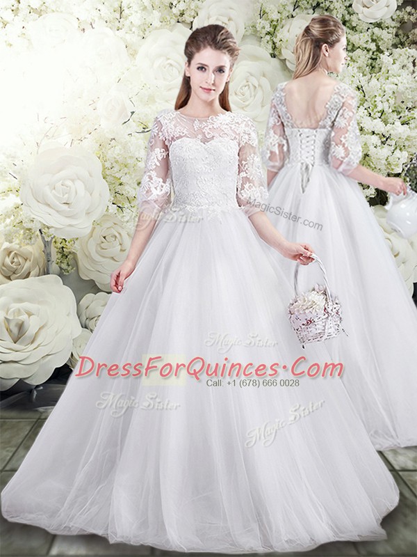 Scoop Half Sleeves Tulle Vestidos de Quinceanera Lace Brush Train Lace Up