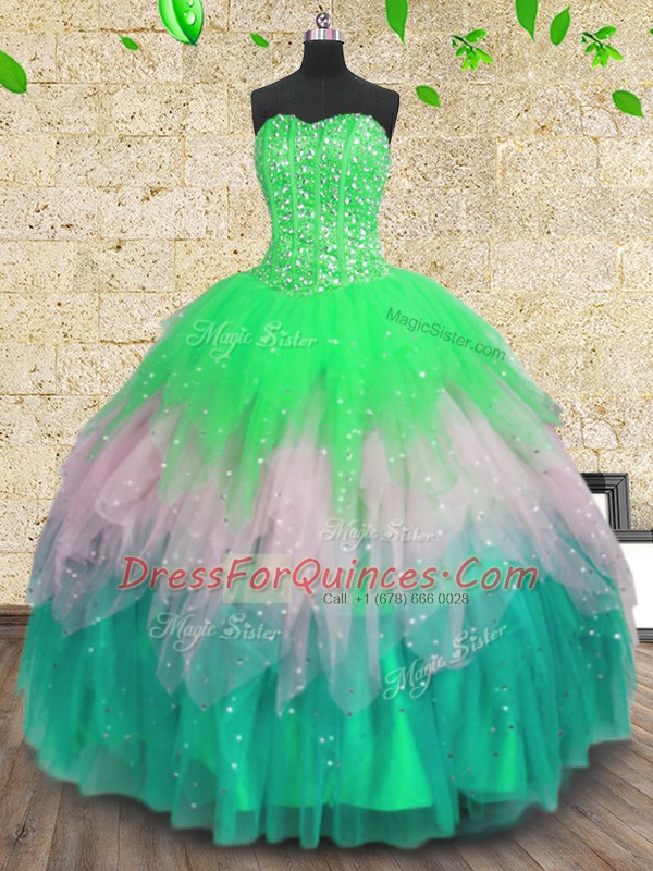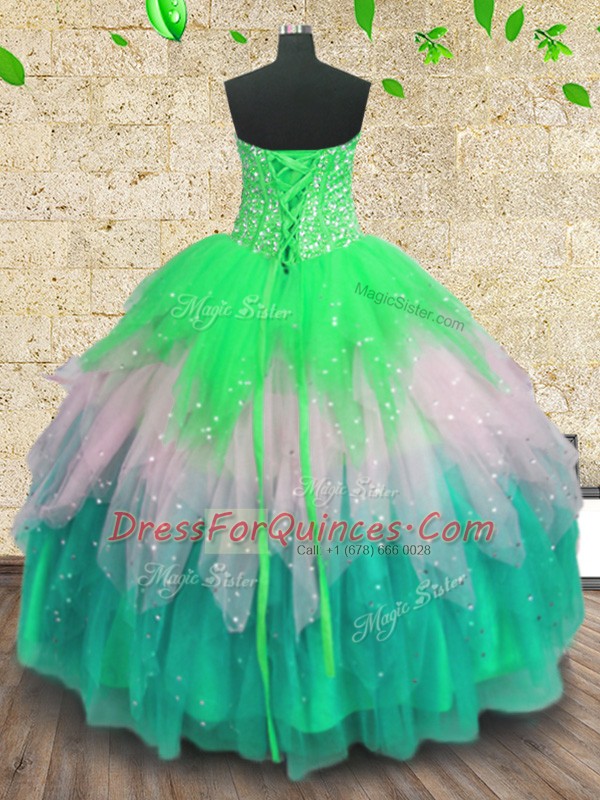 Sleeveless Beading and Ruffles and Sequins Lace Up Quinceanera Gown