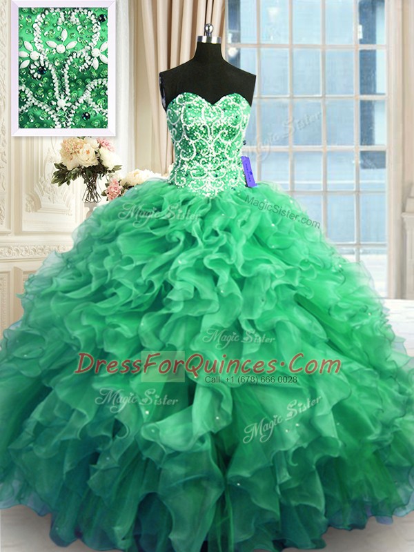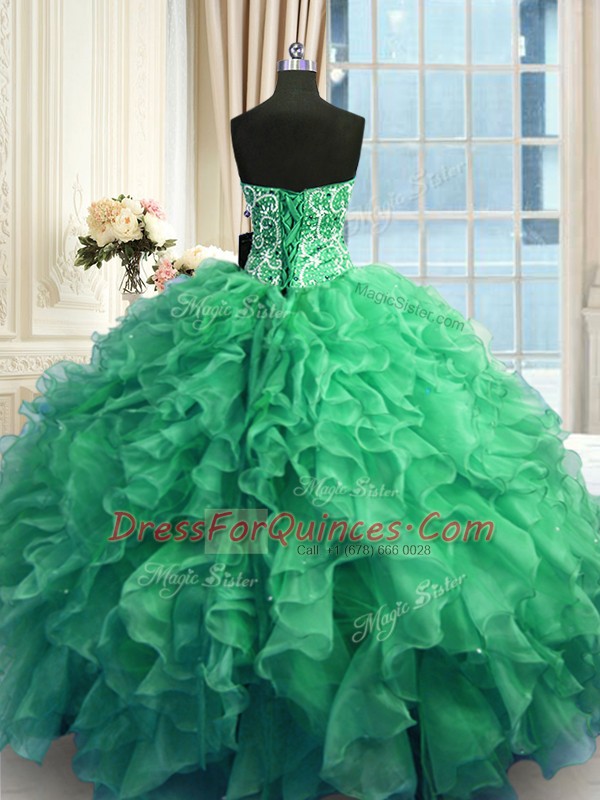 Sleeveless Beading and Ruffles Lace Up Ball Gown Prom Dress