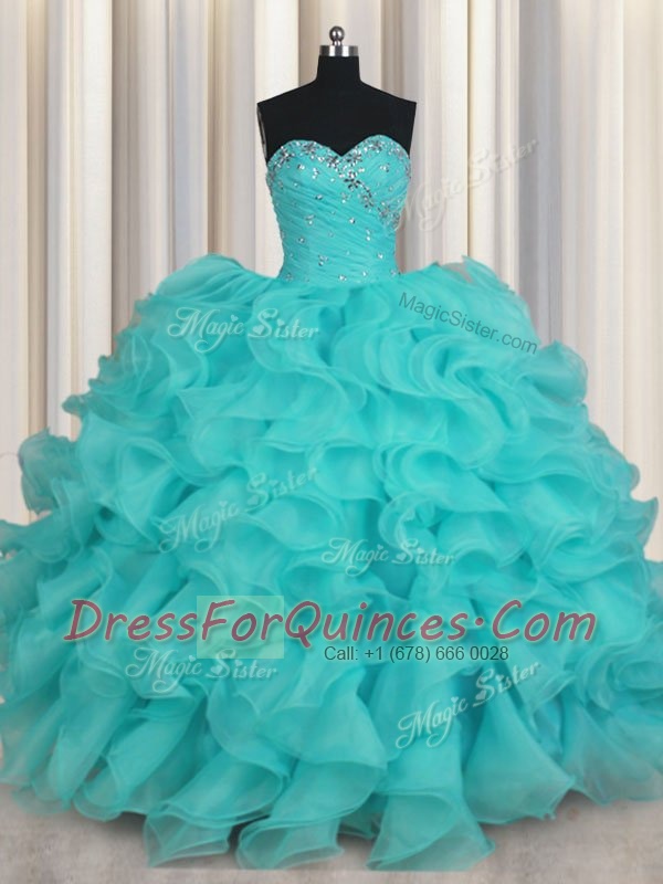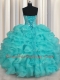 Sleeveless Beading and Ruffles Lace Up Quince Ball Gowns