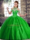Sleeveless Beading Lace Up Quinceanera Gowns with Green Brush Train