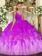 Sleeveless Floor Length Beading and Ruffles Backless Vestidos de Quinceanera with Multi-color