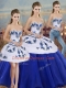 Sleeveless Floor Length Embroidery and Bowknot Lace Up Sweet 16 Dress with Royal Blue