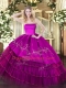 Sleeveless Floor Length Embroidery and Ruffled Layers Zipper Quinceanera Dresses with Fuchsia