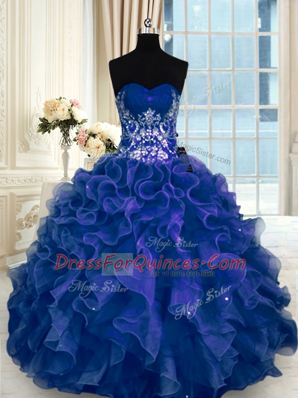 Sleeveless Lace Up Floor Length Beading and Appliques and Ruffles Vestidos de Quinceanera