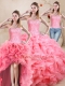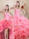 Sleeveless Organza Floor Length Lace Up Vestidos de Quinceanera in Watermelon Red with Beading and Ruffles