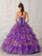Strapless Ball Gown Purple Ruffles Beadings and Appliques 2014 Quiceanera Dresses
