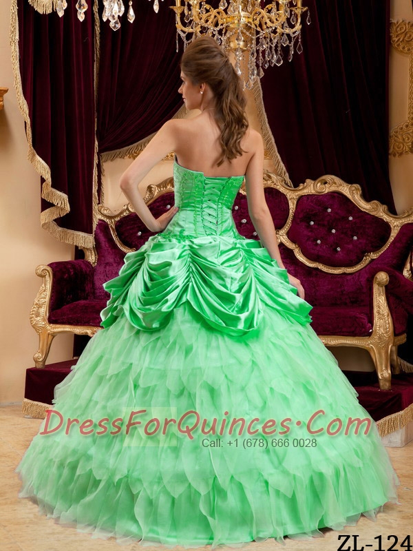 Strraps Ball Gown Taffeta and Organza Pick-ups and Ruffles Apple Green Spring Quinceanera Dresses 2014