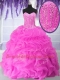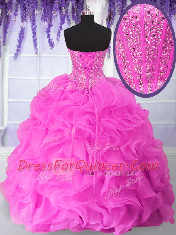 Stunning Organza Sweetheart Sleeveless Lace Up Beading and Ruffles Sweet 16 Dresses in Fuchsia
