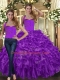 Stunning Purple 15 Quinceanera Dress Military Ball and Sweet 16 and Quinceanera with Ruffles Halter Top Sleeveless Lace Up