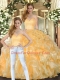 Stylish Gold Sleeveless Beading and Ruffles Floor Length Sweet 16 Dress