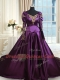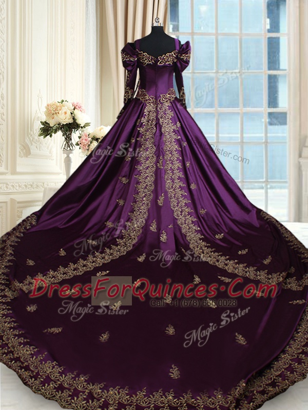 Suitable Dark Purple Off The Shoulder Neckline Beading and Embroidery Sweet 16 Quinceanera Dress Long Sleeves Zipper