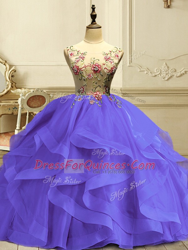Superior Floor Length Lavender Vestidos de Quinceanera Organza Sleeveless Appliques and Ruffles