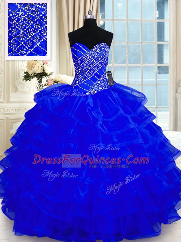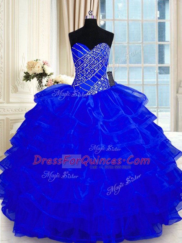 Superior Ruffled Sweetheart Sleeveless Lace Up Sweet 16 Quinceanera Dress Royal Blue Organza