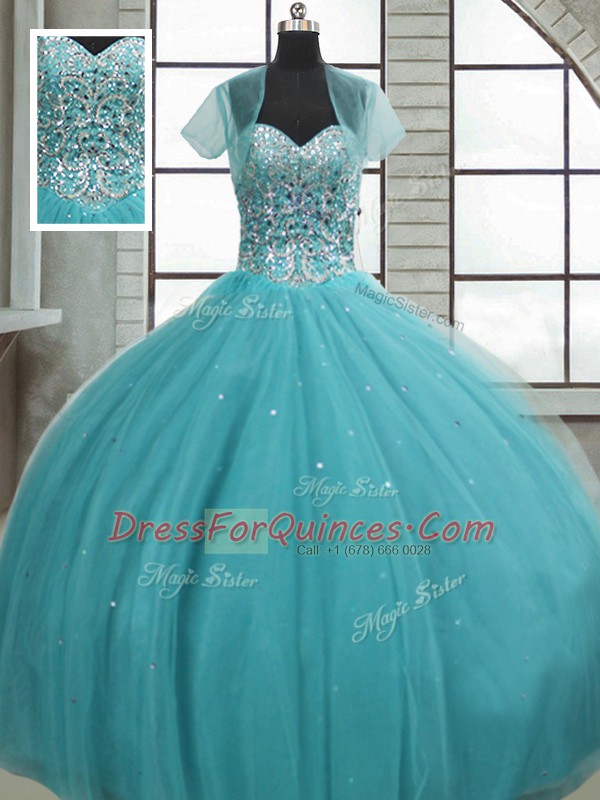 Sweet Tulle Sleeveless Floor Length Quince Ball Gowns and Beading and Sequins