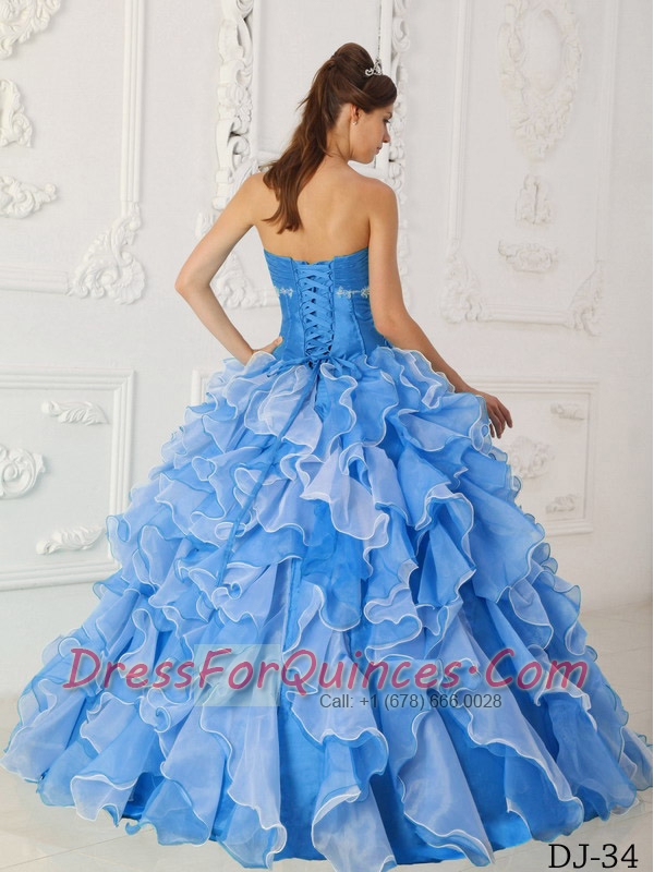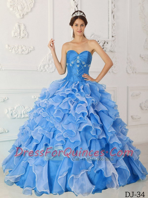 Sweetheart 2014 Quinceanera Dresses Beading and Ruffles Blue Taffeta and Organza A-line/Princess