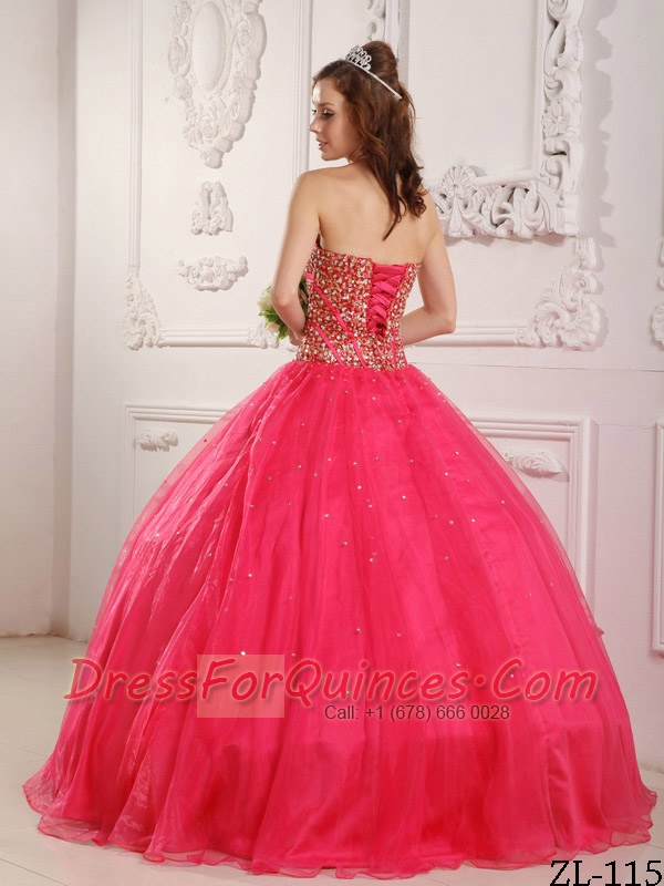 Sweetheart Ball Gown Beading Satin and Organza Hot Pink Lace-up