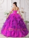 Sweetheart Ball Gown Fuchsia Embroidery and Ruffles Satin and Organza Spring Quinceanera Dresses