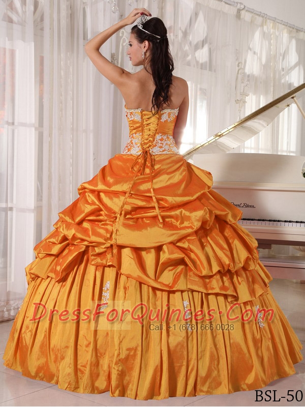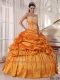 Sweetheart Ball Gown Taffeta Appliques and Ruching Orange Spring Quinceanera Dresses 2014
