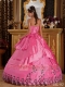 Sweetheart Ball Gown Taffeta Hot Pink Appliques Spring Quinceanera Dresses 2014