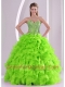 Sweetheart Beading and Ruffles Ball Gown Lace-up Organza Spring Quinceanera Dresses 2014