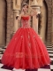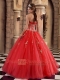 Sweetheart Red Beadings Organza Spring Quinceanera Dresses Lace-up 2014 Ball Gown