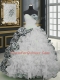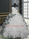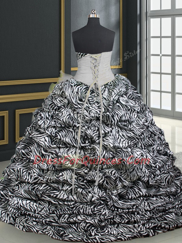 Sweetheart Sleeveless 15th Birthday Dress With Brush Train Beading and Ruffles and Pattern White Organza and Printed