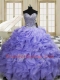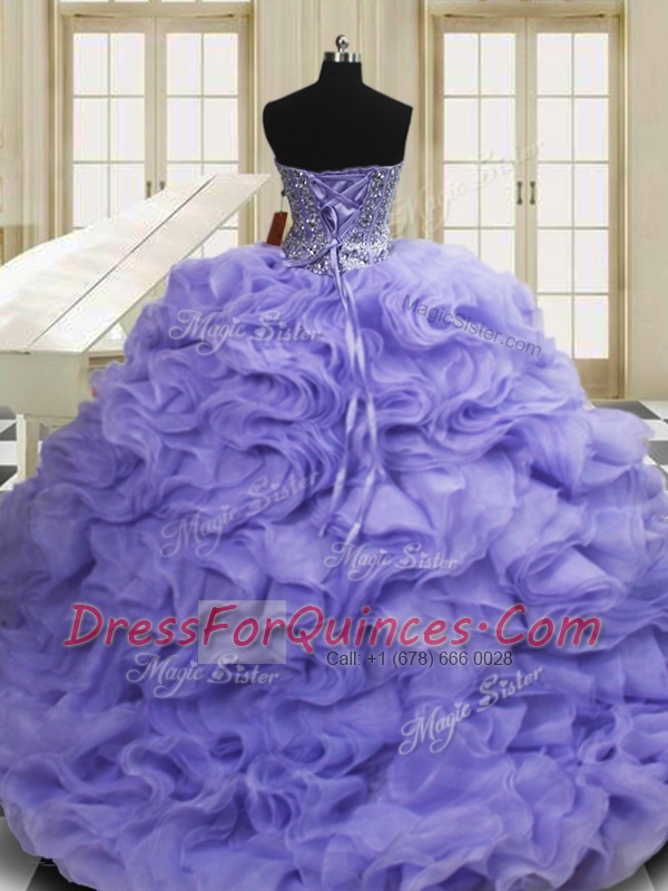 Sweetheart Sleeveless Sweet 16 Dress Sweep Train Beading and Ruffles Lavender Organza