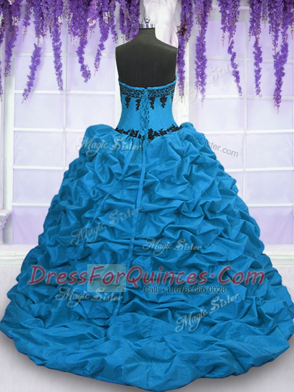 Sweetheart Sleeveless Taffeta Sweet 16 Dresses Appliques and Pick Ups Sweep Train Lace Up