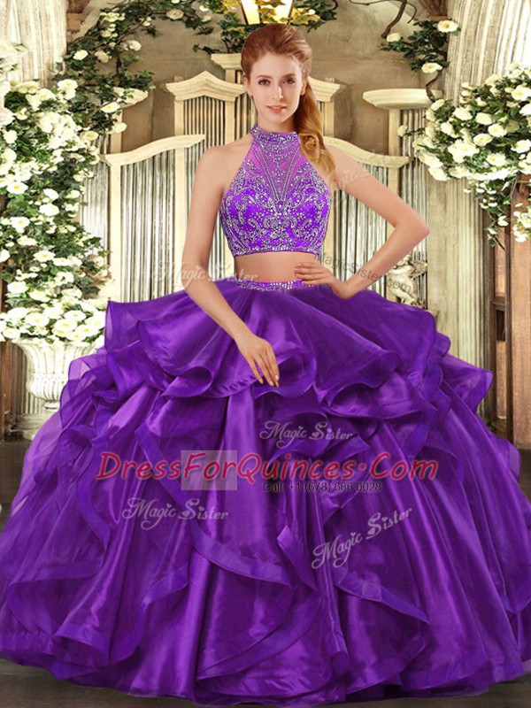 Top Selling Organza Sleeveless Floor Length Sweet 16 Dress and Beading and Ruffled Layers