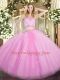 Traditional Floor Length Lilac Quinceanera Gowns High-neck Sleeveless Zipper