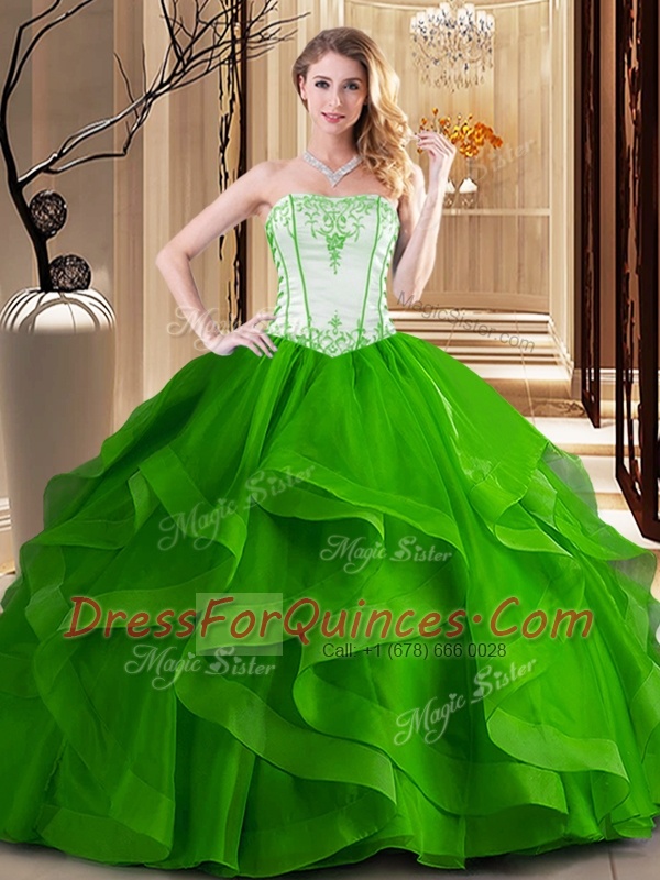 Trendy Sleeveless Lace Up Floor Length Embroidery Sweet 16 Dress
