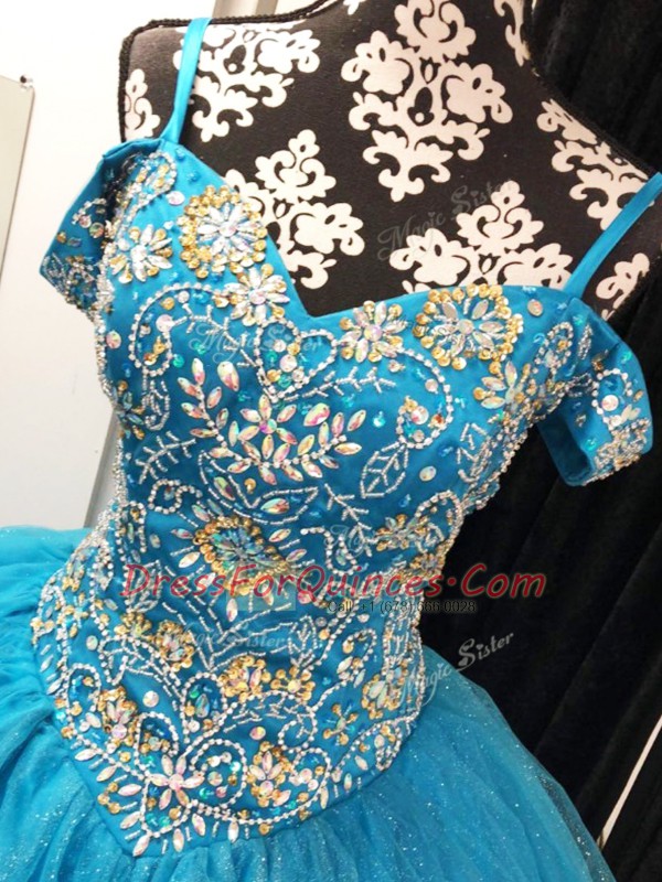 Tulle Straps Sleeveless Lace Up Beading Sweet 16 Dresses in Baby Blue