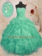 Turquoise Ball Gowns Organza Strapless Sleeveless Beading and Ruffles and Ruching Floor Length Lace Up Quinceanera Gowns