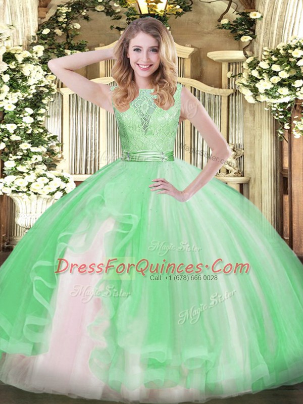Unique Scoop Sleeveless Organza Vestidos de Quinceanera Lace and Ruffles Backless