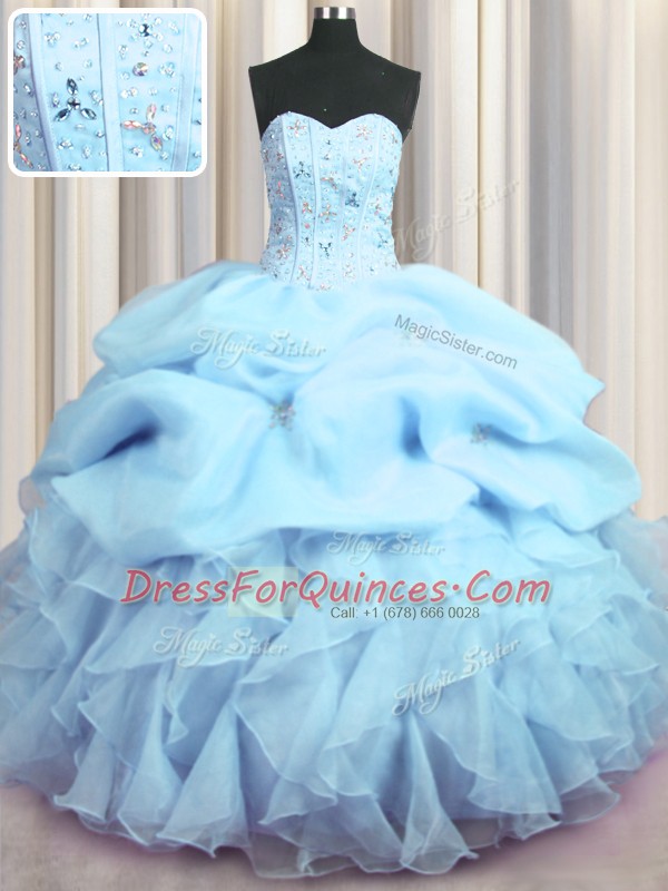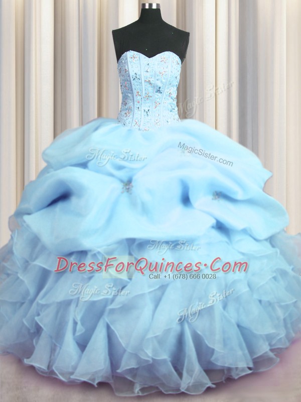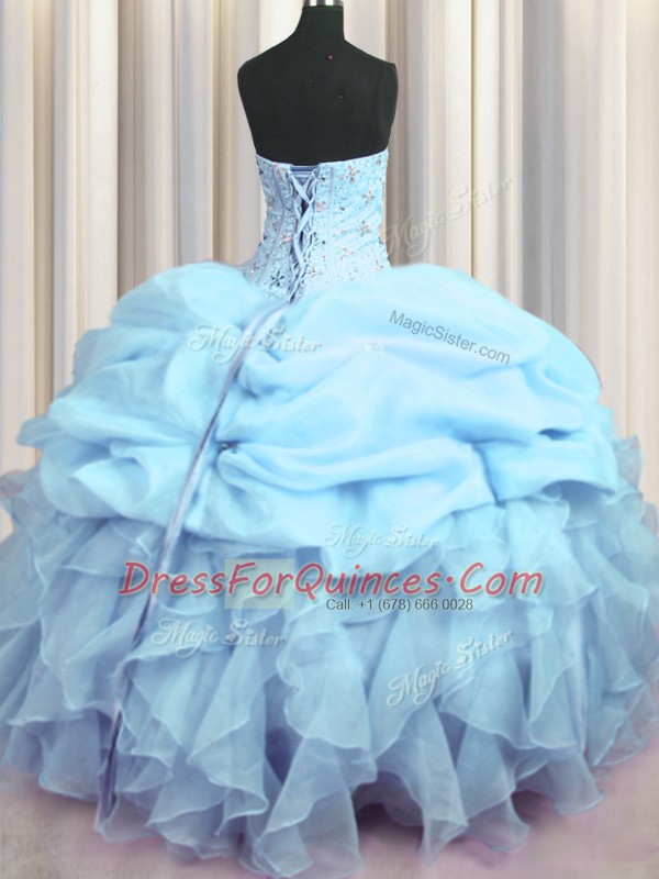 Visible Boning Sleeveless Lace Up Floor Length Beading and Ruffles and Pick Ups Quinceanera Gowns